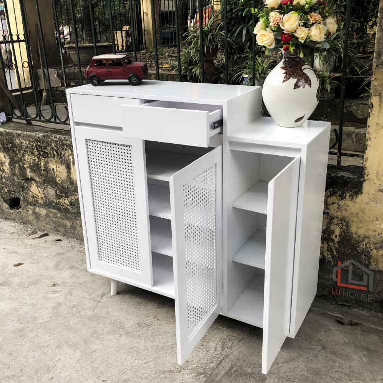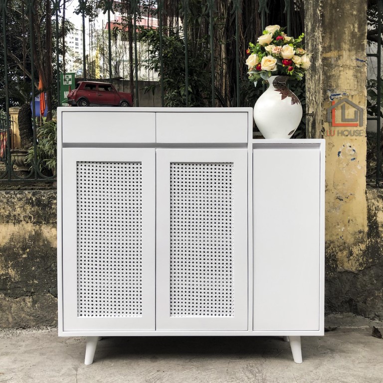 Tủ giày LU House đặc biệt được thiết kế với cánh mây gỗ đem lại sự thông thoáng, không ủ mùi gây khó chịu cho gia chủ.